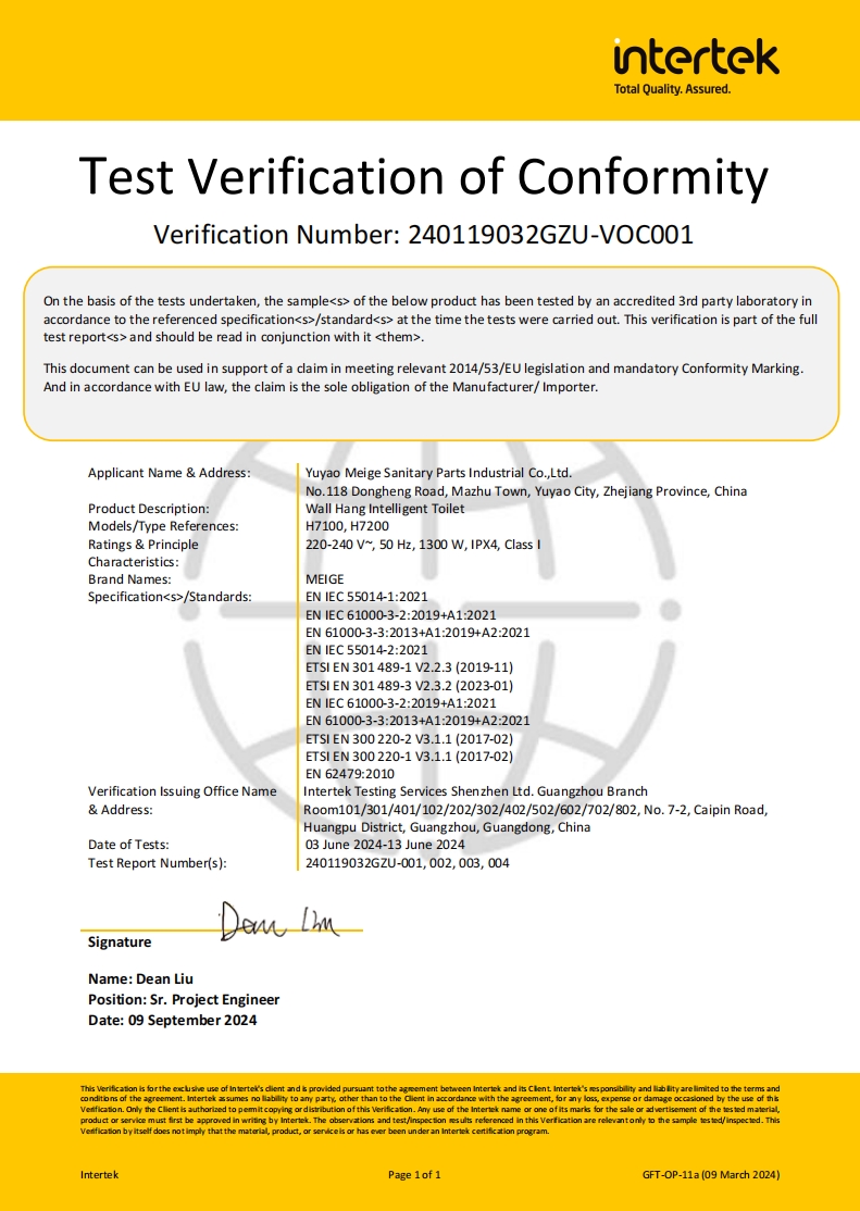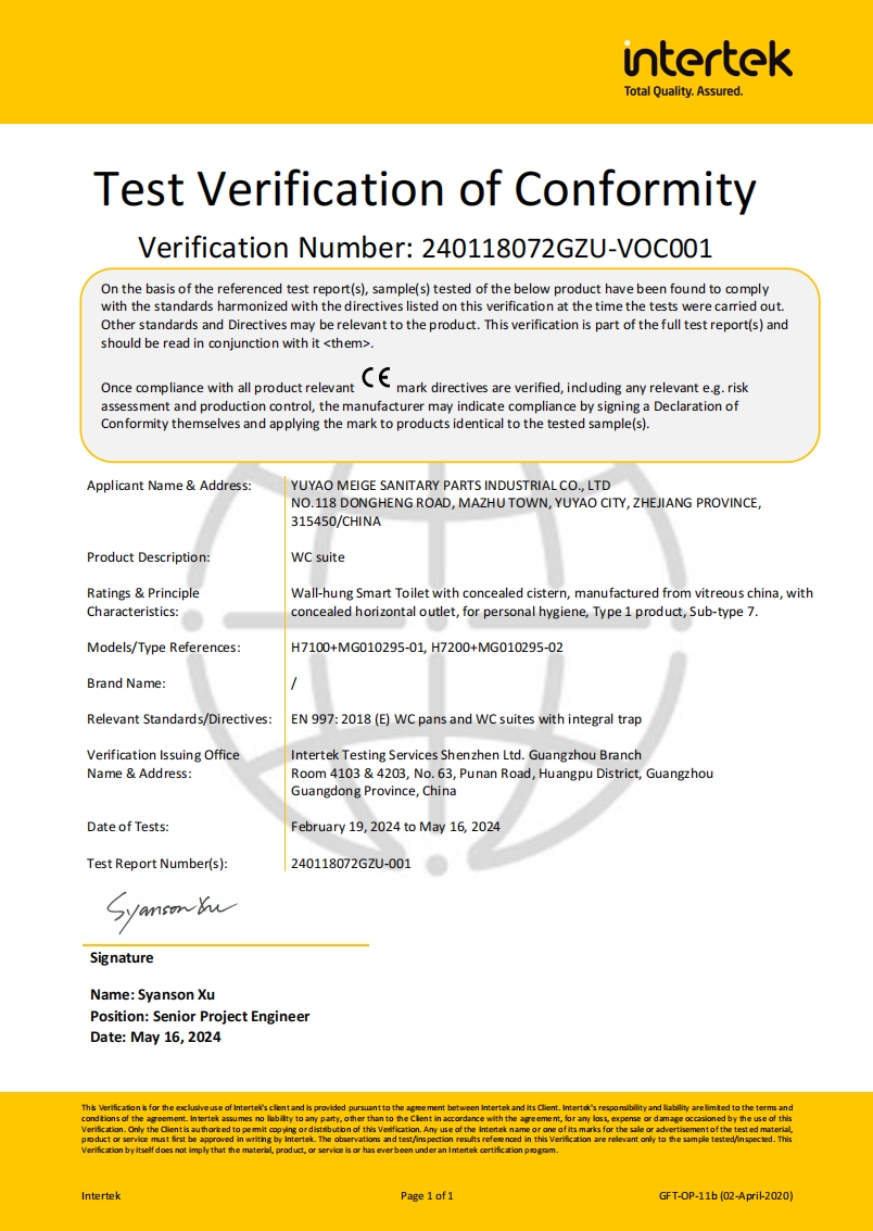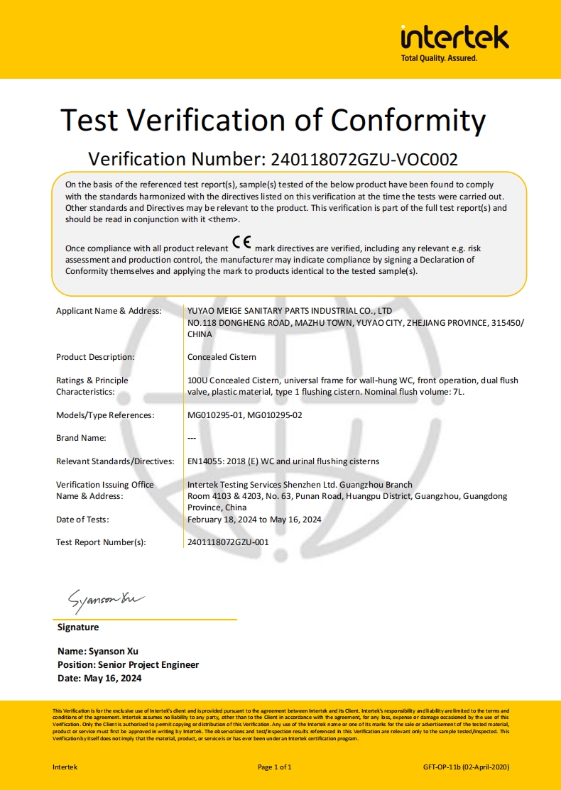 After years of precipitation,in 2008, Meige formally entered the intelligent sanitaryware industry, with a total investment of about 10 million RMB to build an intelligent sanitaryware production workshop, with an annual production capacity of 200,000 sets of intelligent toilet seat covers. In 2016, Meige formally set up the Intelligent Sanitaryware Division. In 2018, Meige expanded the intelligent toilet production line with an annual production capacity of about 500,000 sets,and with manufacturing capacity of more than 8 million sets of toilet tank fittings. The intelligent water-saving products have become a professional cooperative supply base for domestic and foreign OEM / ODM clients. The company continues to invest in product research and development, design innovation to provide customers with better quality products and services.
